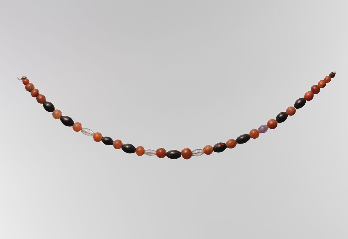 - Medium: Carnelian, amethyst, hematite, garnet; modern string