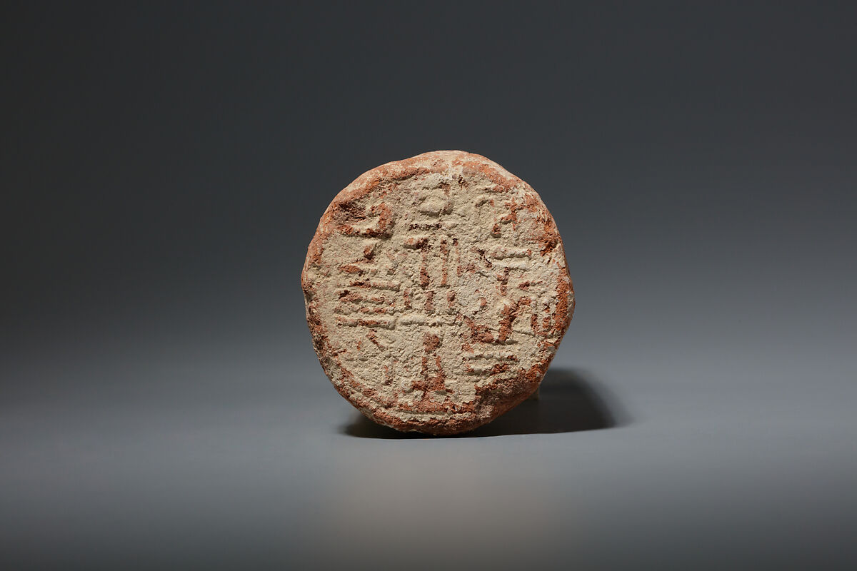 This cone has the impression of a stamp seal inscribed for an overseer of the priests (prophets) of the god Onuris named Min who was the owner of Theban tomb 109. For another example of this type of cone see 30.6.116 and for a drawing see http://www.funerarycones.com/, number 109.