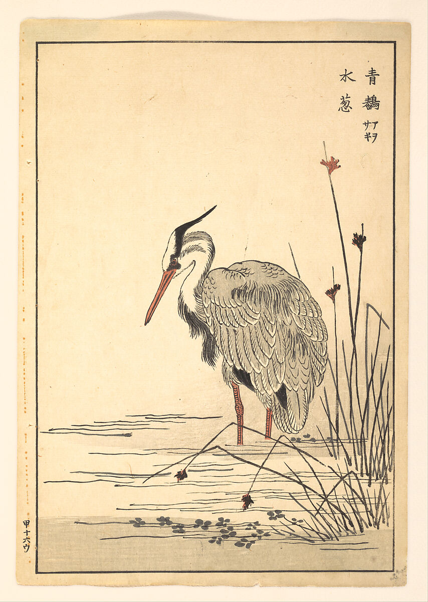 - Title: Gray Heron (Aosagi) and Mizu-aoi Plant