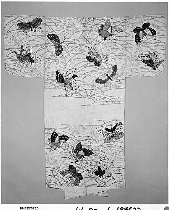 - Title: Noh robe (Nuihaku) with Design of Butterflies and Miscanthus Grass in Mist
