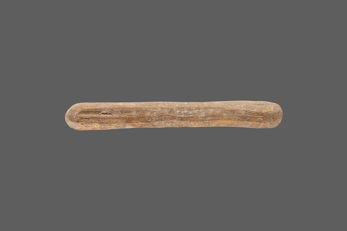 Discovered in the pit of MMA 60, this is one of three wooden rods with rounded ends, slightly larger at the ends than in the middle. This stick and 25.3.177 seem to have made a pair; 25.3.176 is slightly shorter. These rods may have been used as handles on ropes by the ancient undertakers to lower the inner coffins into the outer coffins, or for lowering an entire set of coffins into place.