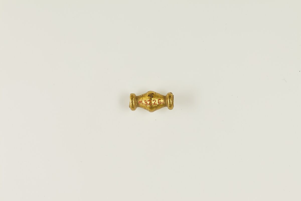 Gold glass beads were a Hellenistic development. They were created by combining drawn tubes of colorless glass with gold foil. The earliest examples were finished bead by bead. These are all modern stringings; most ancient stringing patterns are lost as the string decays.