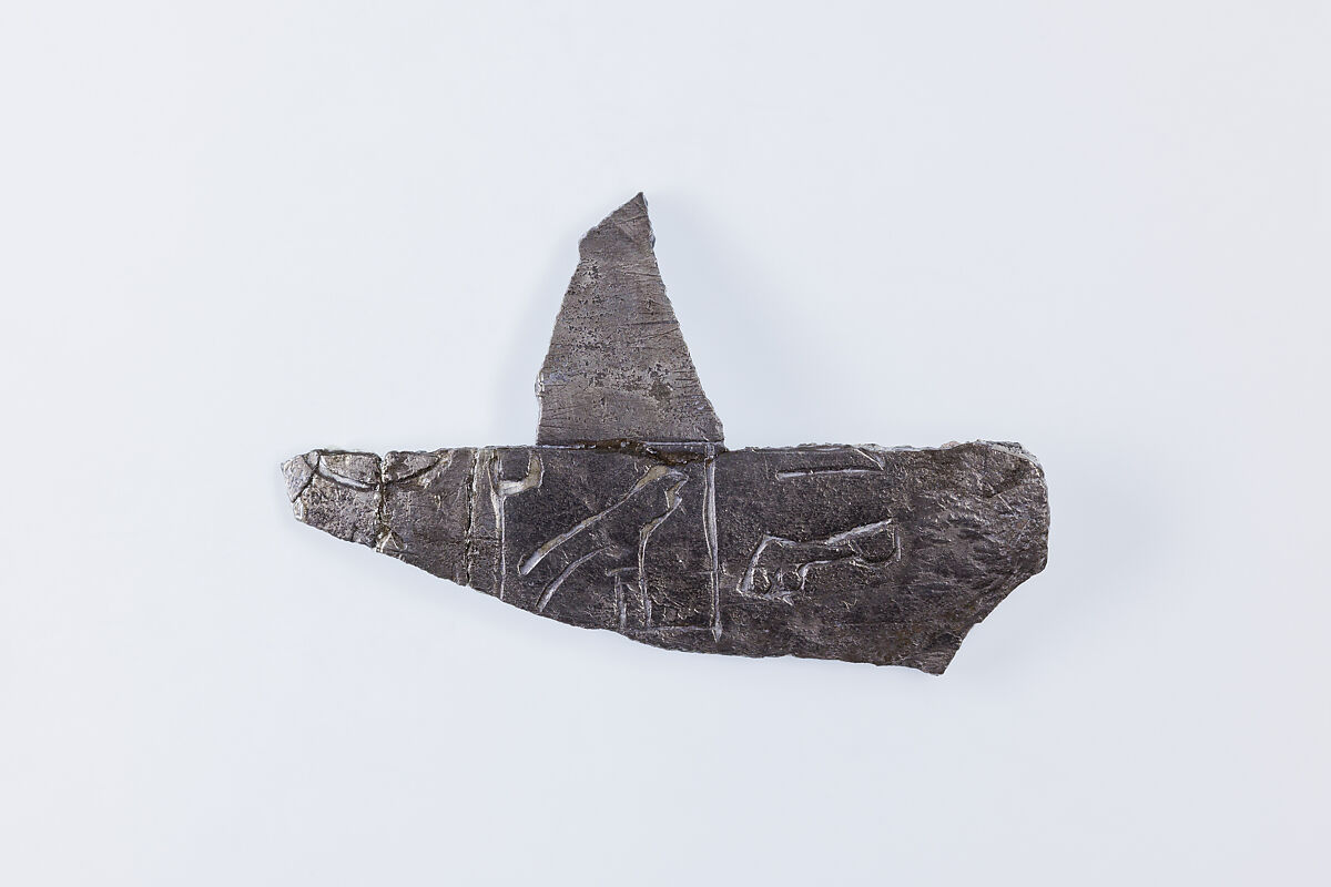 Discovered in 1906 at the site of Tell Basta, this fragment comes from the body of a vessel that was likely part of a wine service, perhaps used in temple festivals. It is incised with an inscription that reads ". . . before Hathor, lady of [Byblos]."