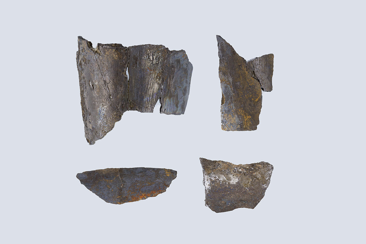 These silver fragments are part of the "Tell Basta Treasure," found in 1906 at the site of Tell Basta. These particular objects are likely neck fragments from a situla that may have been used in a wine service. (see 30.8.369 for a complete example).