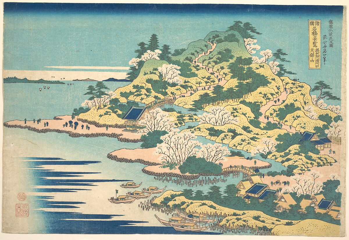 - Title: Tenpōzan at the Mouth of the Aji River in Settsu Province (Sesshū Ajikawaguchi Tenpōzan), from the series Remarkable Views of Bridges in Various Provinces (Shokoku meikyō kiran)