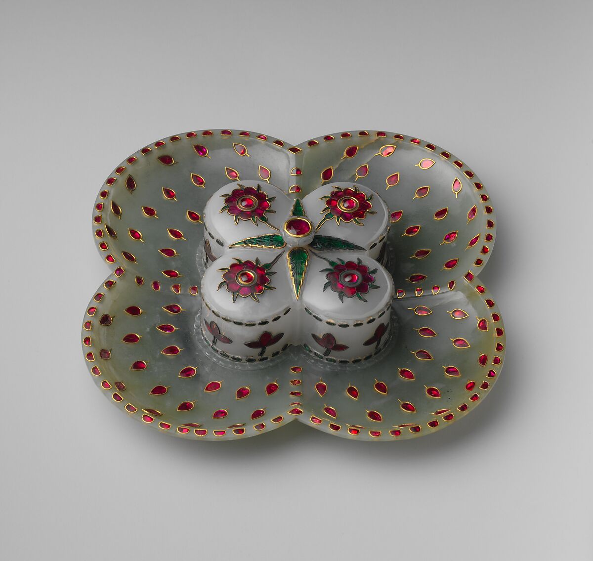 - 莫臥兒王朝 鑲金嵌寶帶托盤四格玉盒