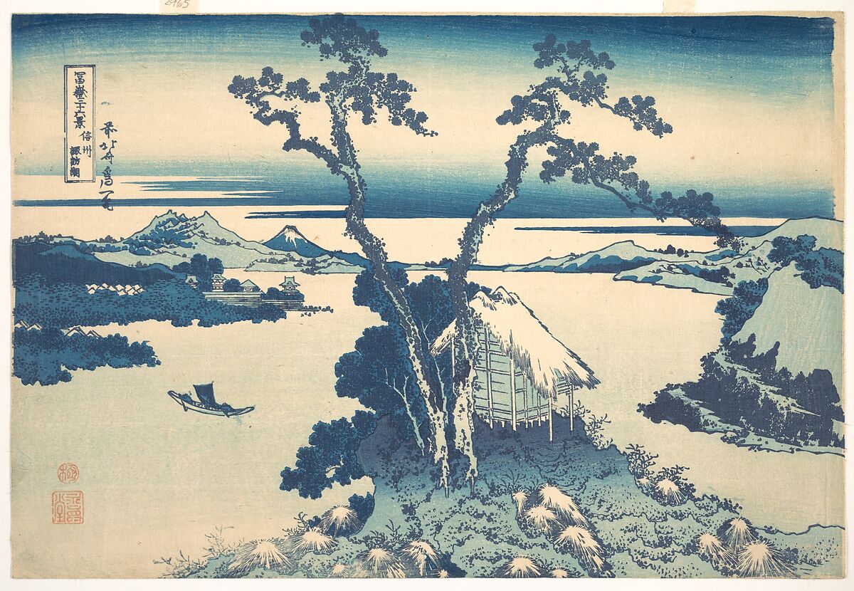 - Title: Lake Suwa in Shinano Province (Shinshū Suwako), from the series Thirty-six Views of Mount Fuji (Fugaku sanjūrokkei)