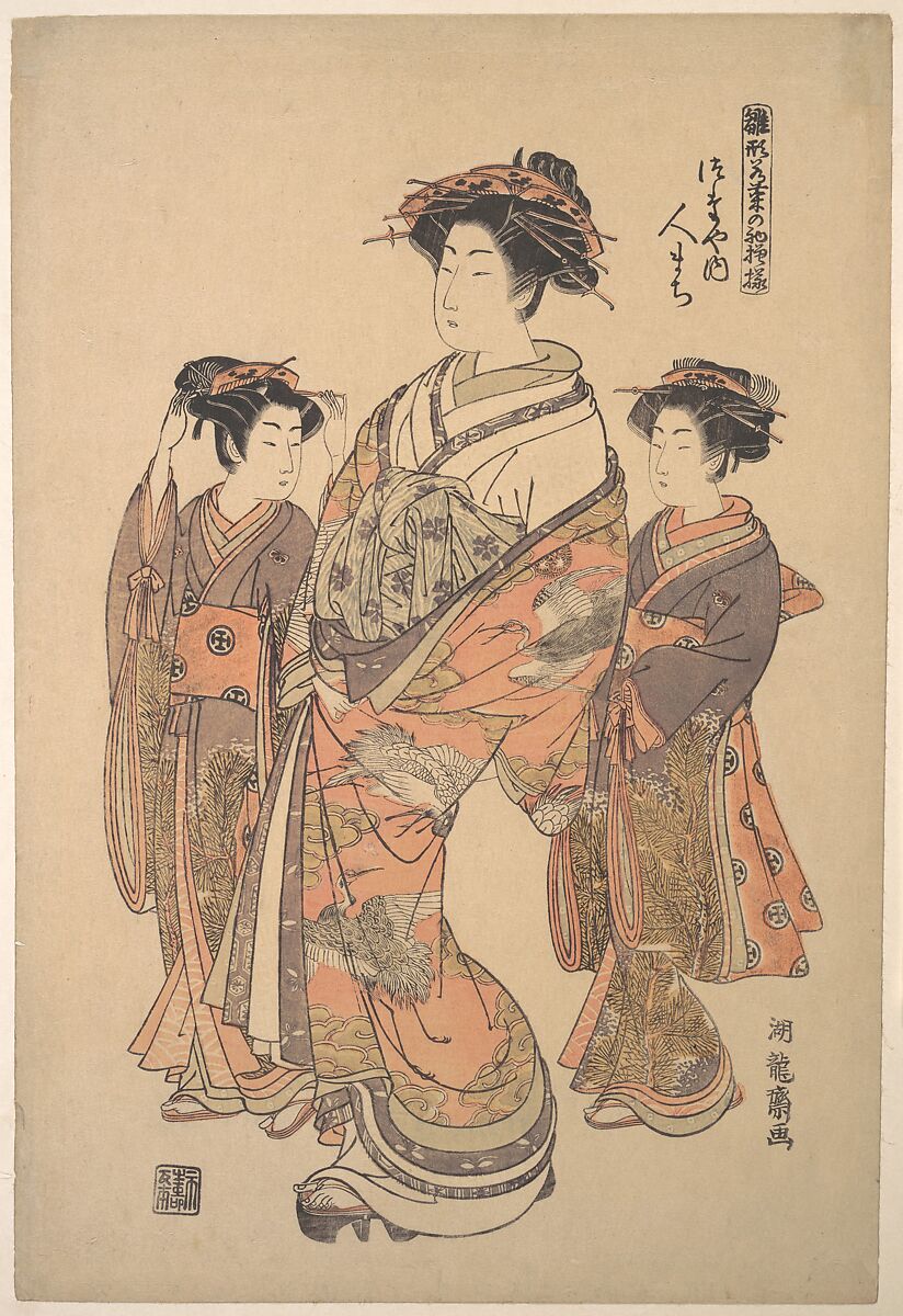 - Title: The Courtesan Hitomachi of the Tsutaya Brothel, from the series “A Pat-tern Book of the Year’s First Designs, Fresh as Spring Herbs” (“Hinagata wakana no hatsu moyō”)