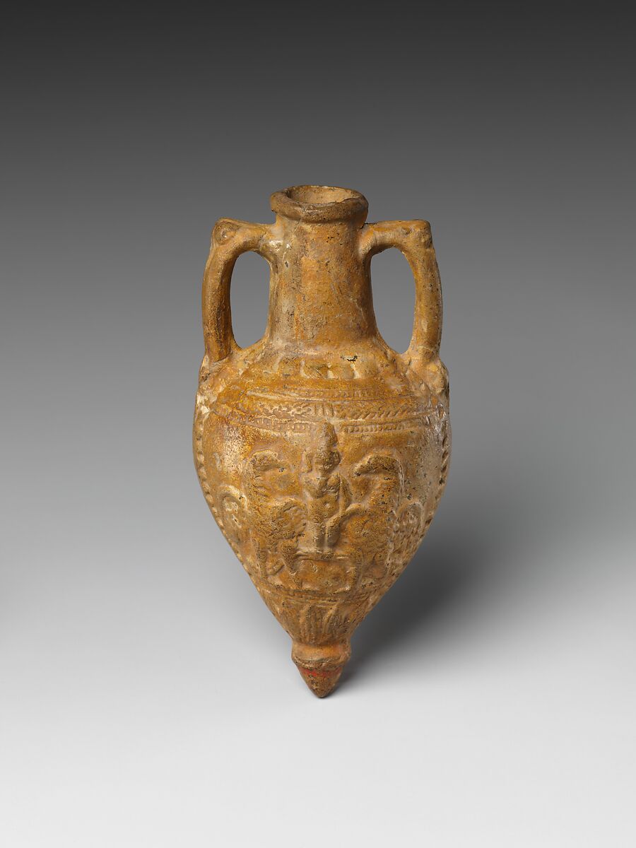 - Title: Amphoriskos with molded design of Harpokrates and eagles
