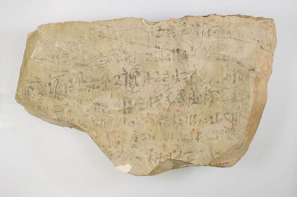 - Title:Hieratic ostracon inscribed with literary text and work journal