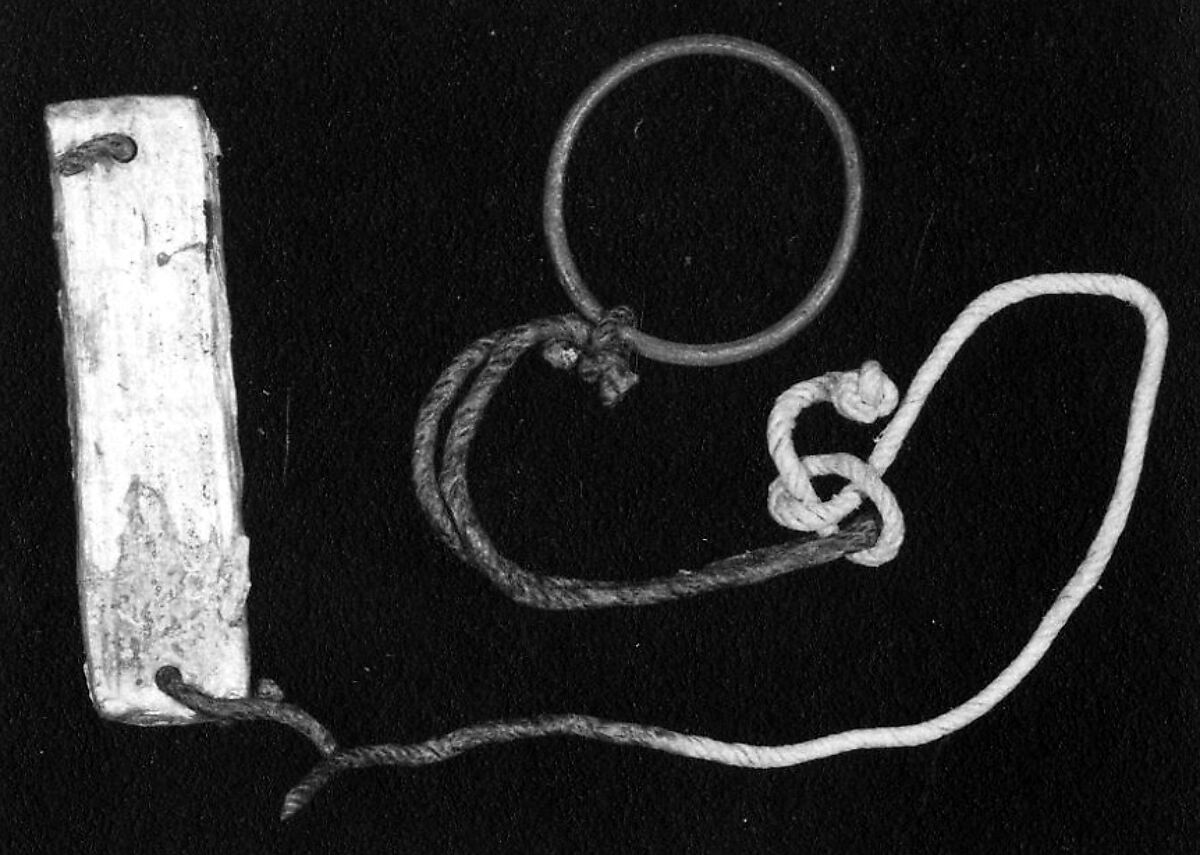 - Title:A plaque tied to a bracelet or ring with a cord