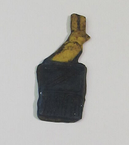 Starting in the later Late Period and continuing through the Ptolemaic Period, a type of glass amulet cast by pressing the glass into a shallow open mold appears. The back was left rough, and the amulets may look ragged because glass overflowed the mold around the edges. The earlier amulets are monochrome, bi- or multicolor amulets supplement the repertoire during the Ptolemaic Period.