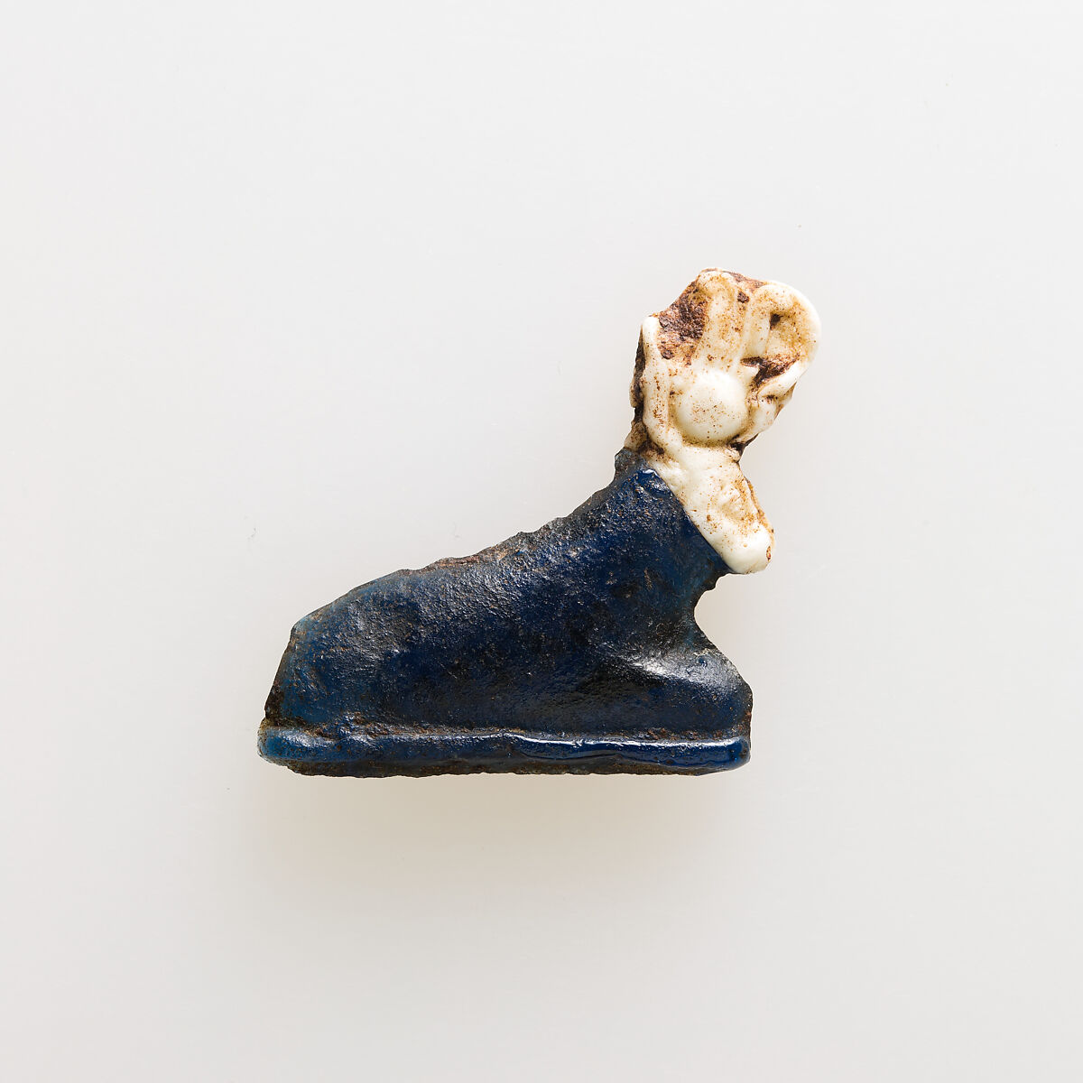 Amulet of kneeling cow wearing disk and feathers