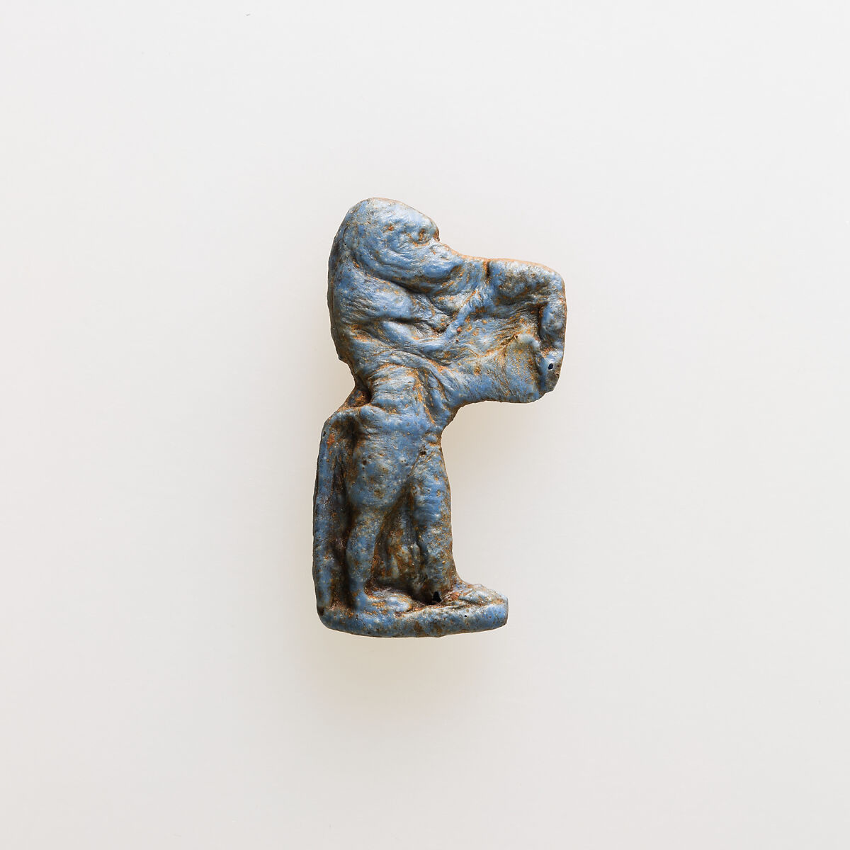 Amulet of a baboon holding an unrecognizable object