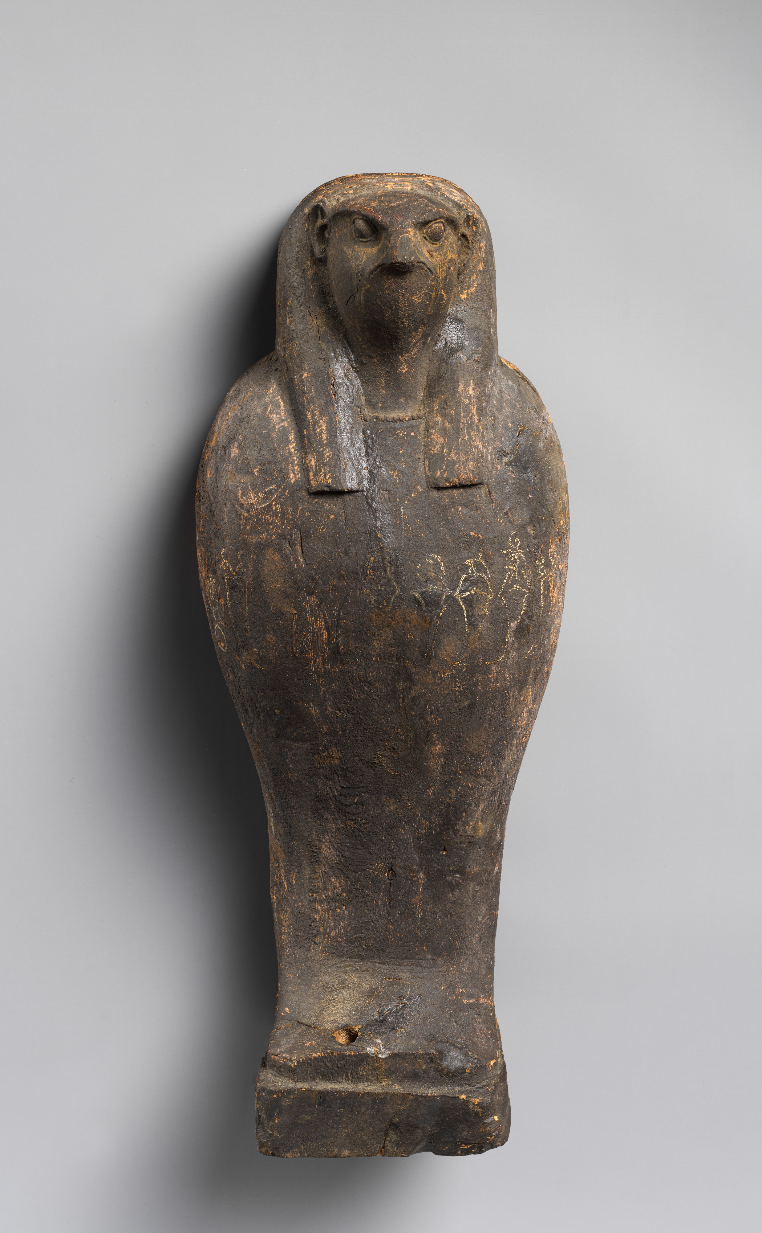 Falcon-headed coffin and grain mummy with Osiris mask