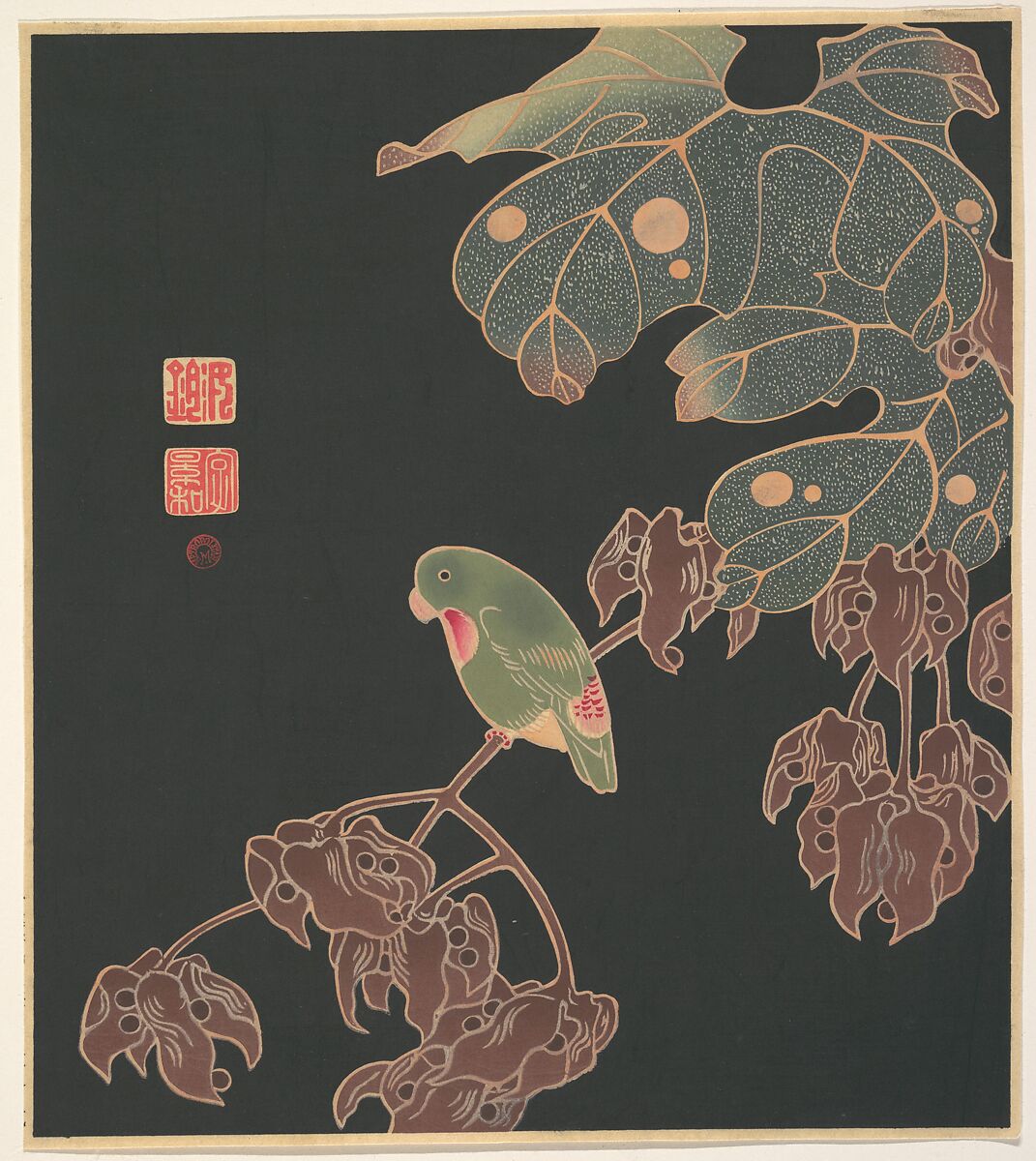 - Medium: Reproduction of an original Jakuchū design; woodblock print, ink and color on paper
