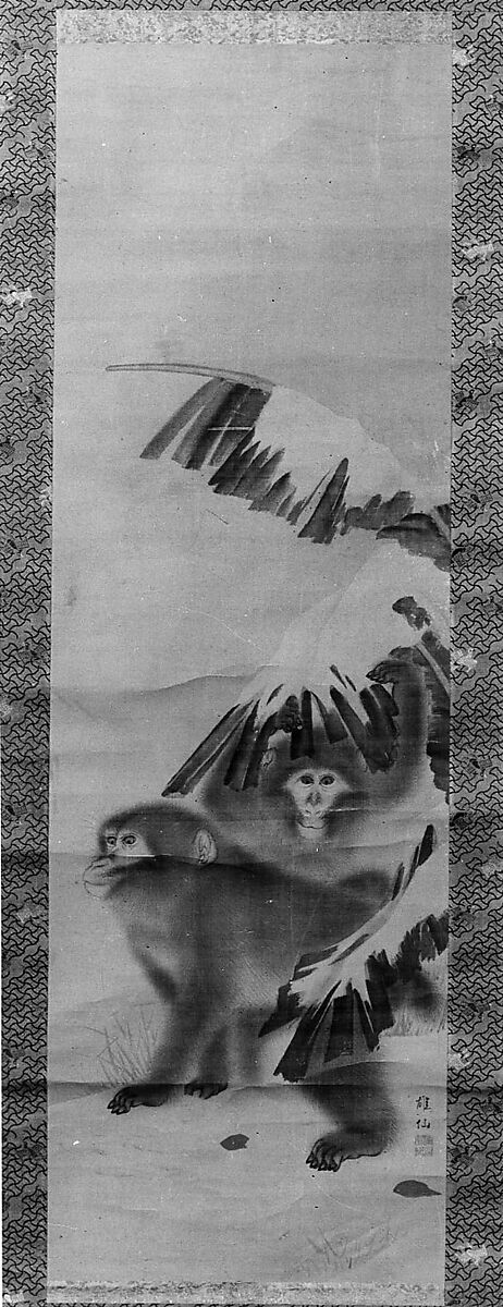 Mori Yūsen was the son of Mori Sosen (1747–1821), famous for his prolific production of monkey paintings. Later Yūsen was adopted by Mori Shūhō (1738–1823) and he lived in Osaka. As this painting demonstrates, he was one of Sosen’s pupils who continued to specialize in paintings of simians.