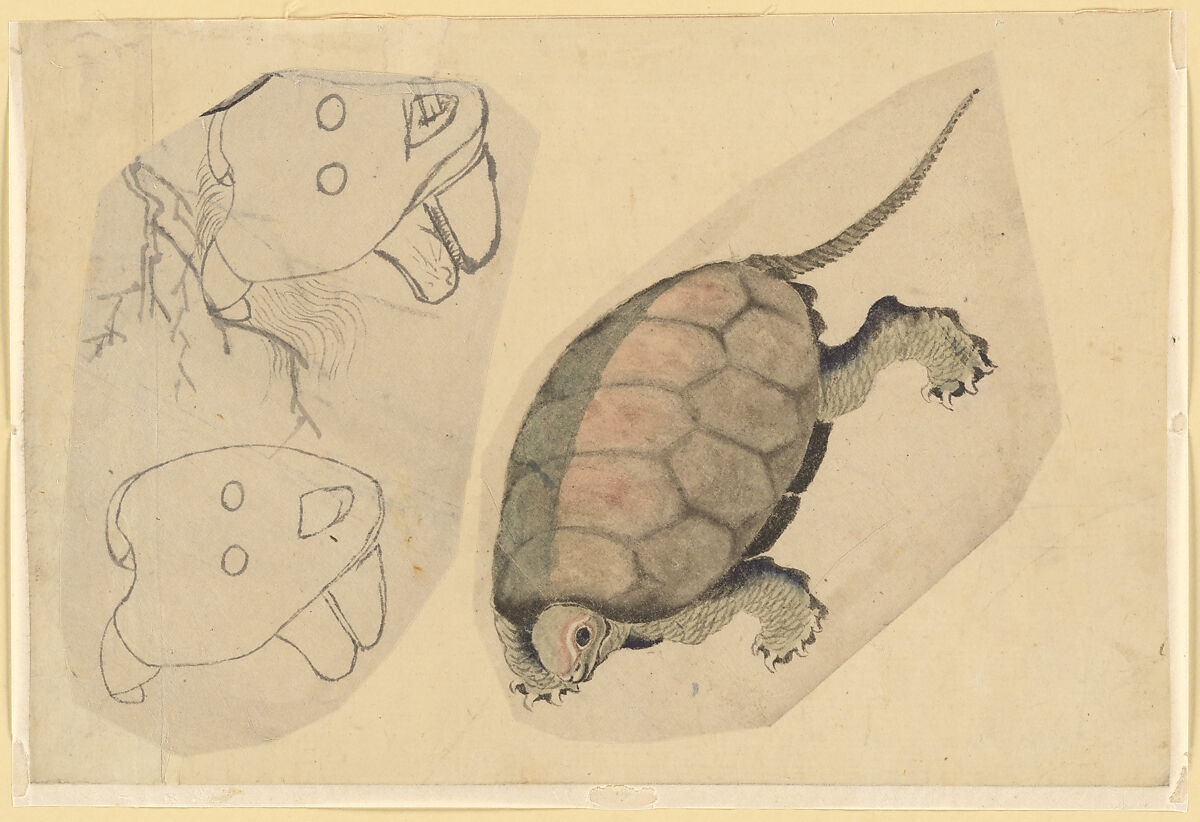 Two Sketches: One of a Turtle, the Other of Two Unidentified Objects