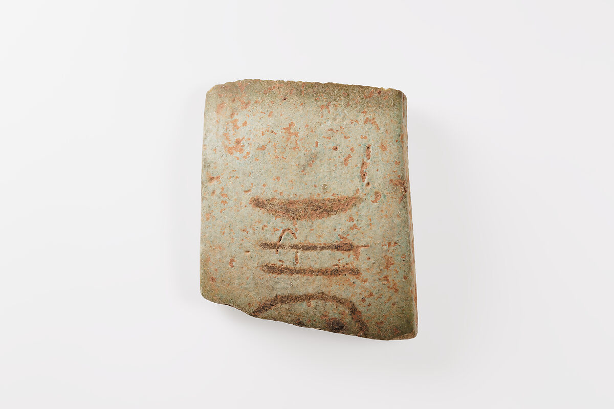 Among the objects received by the Museum in return for its partial sponsorship of Petrie's expedition was a group of 36 bracelet and tile fragments, all bearing royal names or epithets. The cartouches here (see 09.182.19*) belong to Ramesside kings, primarily Ramesses II or III and Seti I.