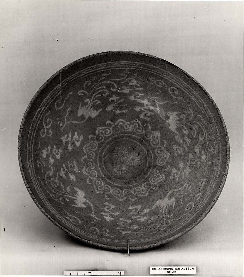 - Medium: Stoneware with inlaid decoration under celadon glaze