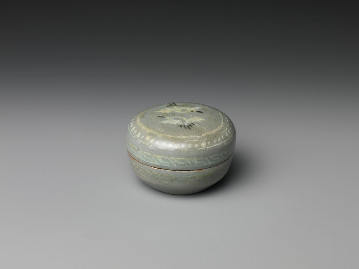 Celadon boxes like those comprising this set—four or five diminutive ones inside a larger round one—were used as containers for cosmetics or incense.