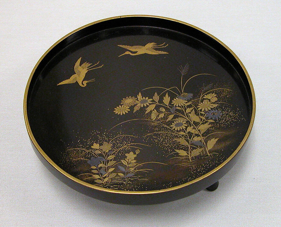- Medium: Lacquer with black ground, hiramakie design in gold and silver