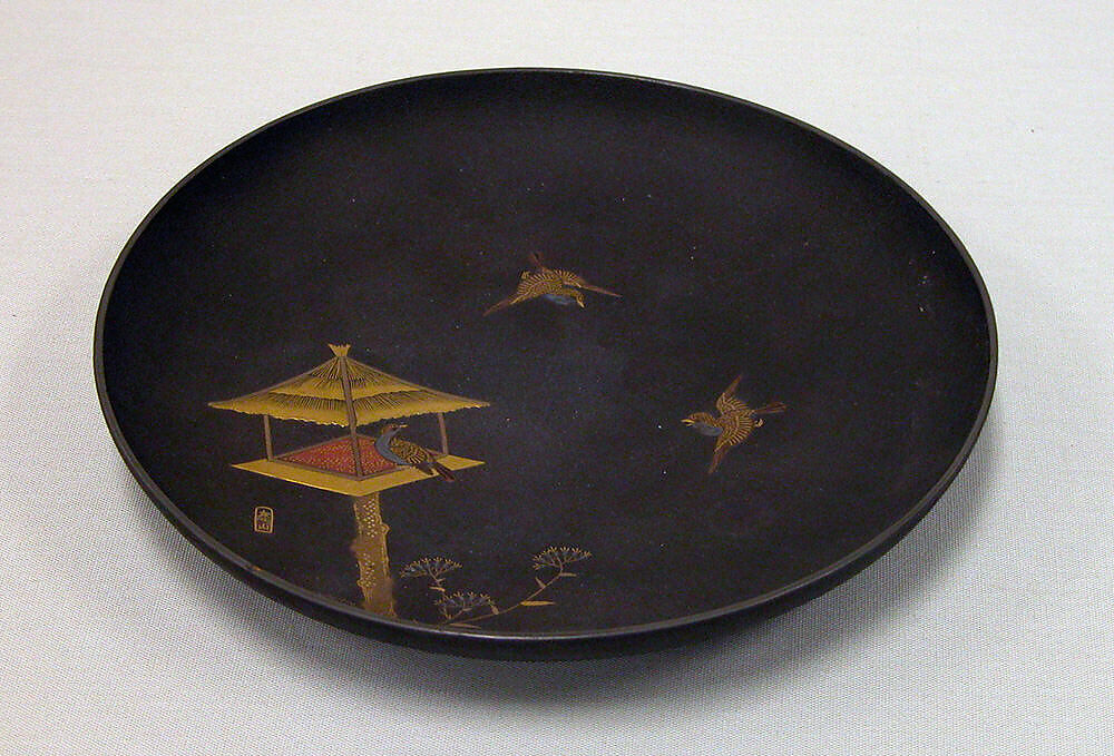 - Medium: Lacquer with black ground, hiramakie design in gold and silver
