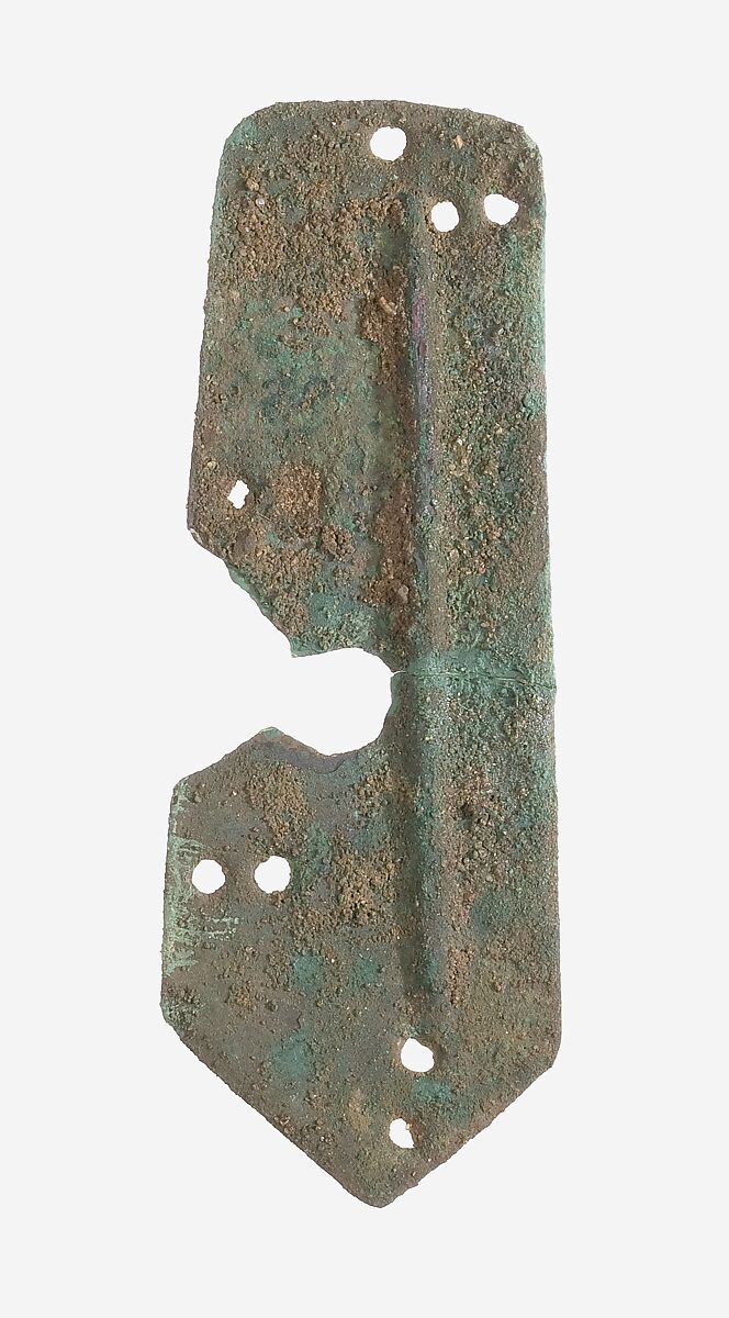 of leather scales was found in the tomb of Tutankhamun. The ten scales (11.215.452a-j) were excavated from the palace of Amenhotep III, but their position, embedded in an enclosure wall, does not allow us to speculate as to who might have worn them. The scales would have been sewn to a linen or leather backing. Although they vary, they still might have constituted the same armor.