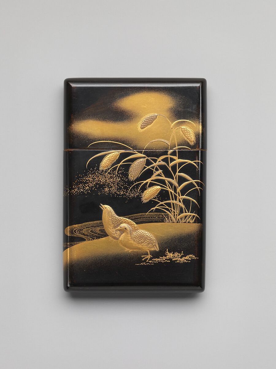 - Medium: Black lacquer ground with gold and silver hiramaki-e