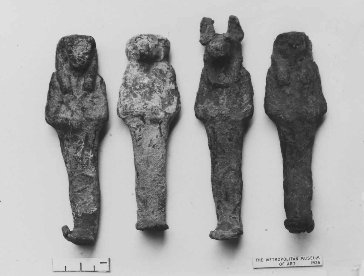 Four "viscera" figures, meant to protect the internal organs, were found inside the mummy of Djedmutesankh. Representing the Four Sons of Horus, these were associated with four of the seven packages of viscera that had been removed, dessicated, wrapped in linen, and put back inside the body. Baboon-headed, this example represents Hapy, usually seen as the embodiment and protector of the lungs.