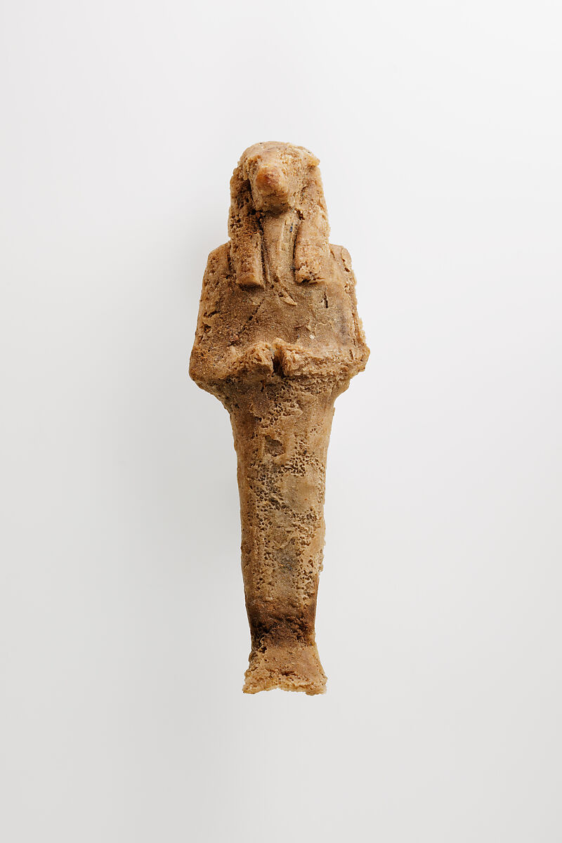 A set of four roughly-made figures (25.3.156a–d) were found inside the mummy of Nesitaset. Each figure represents one of the Four Sons of Horus, the deities who both embodied and protected the internal organs. Nesitaset's organs had been removed, divided into seven packages, dessicated, wrapped in linen, and placed back in the body. This figure represents the jackal-headed Duamutef, usually seen as the guardian of the stomach..