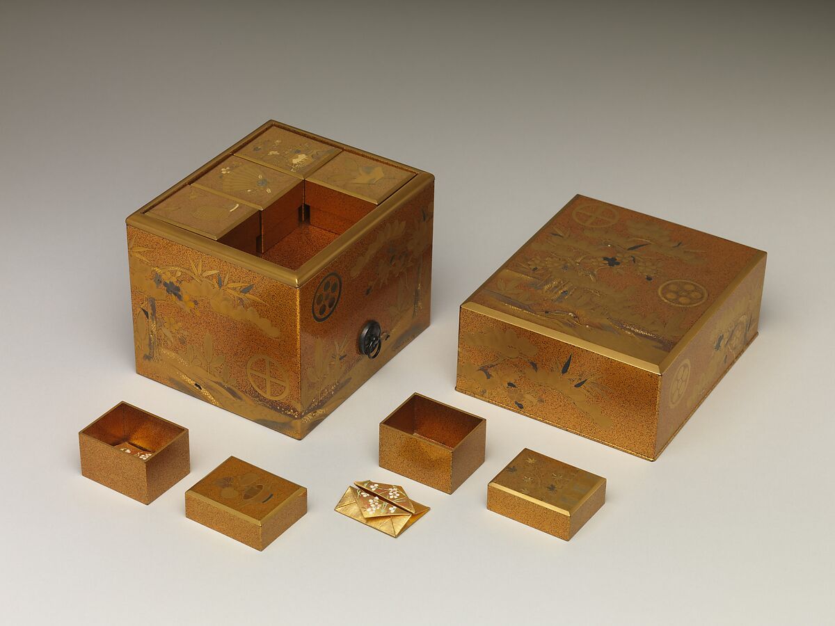- Medium: Sprinkled gold on lacquer (maki-e)