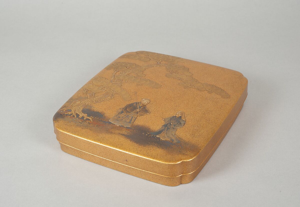 - Title:Writing Box with Design of Elderly Couple under Pine from the Noh Play Takasago