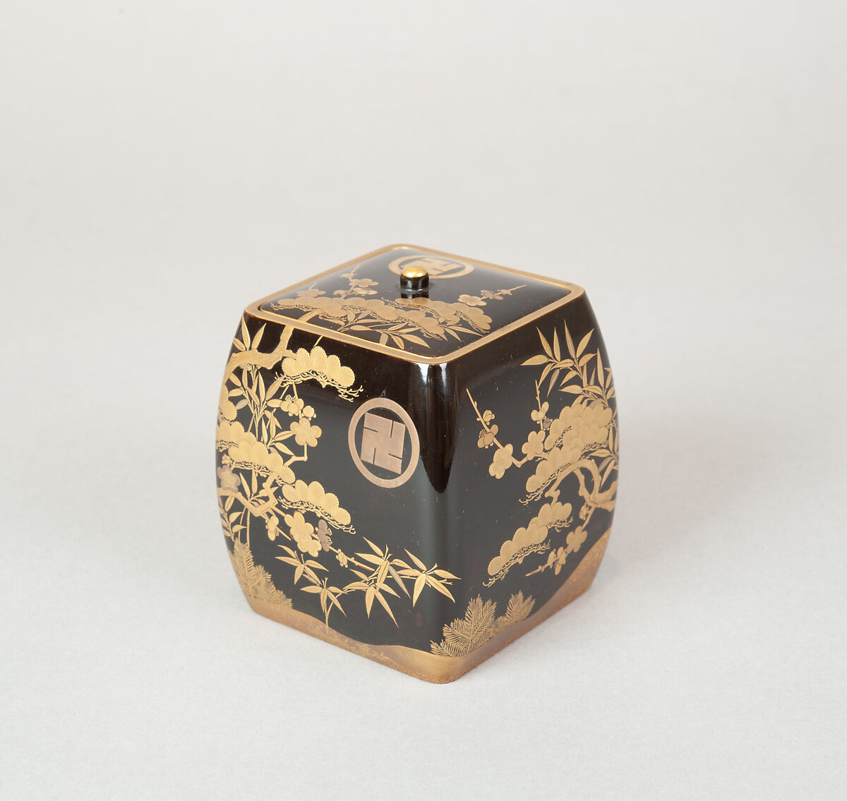 - Title: Ash Container (Takigara-ire) for Incense Ceremony, with Family Crest, Pine, Bamboo, and Plum