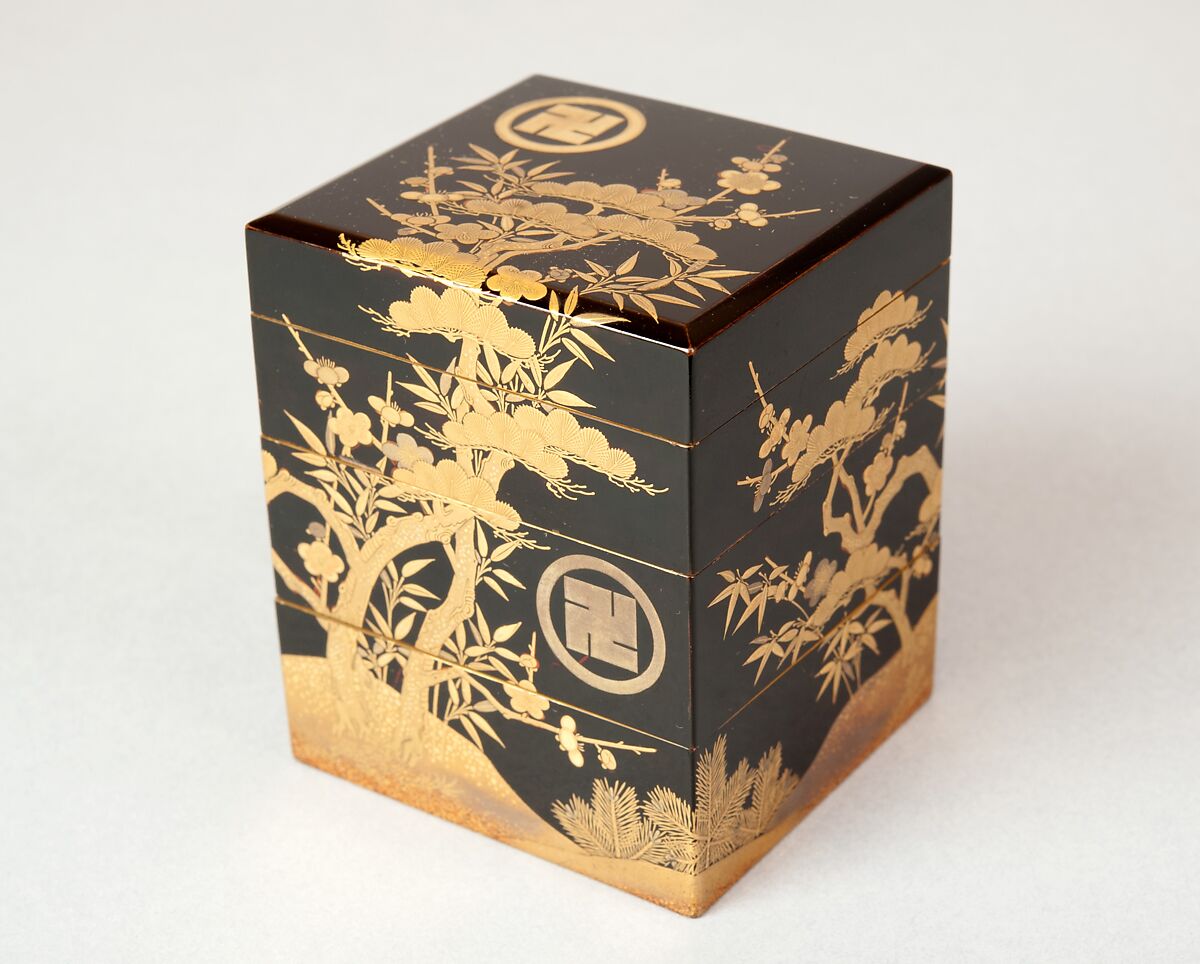 Tiered Incense Box (Jūkōgō) with Family Crest, Pine, Bamboo, and Plum