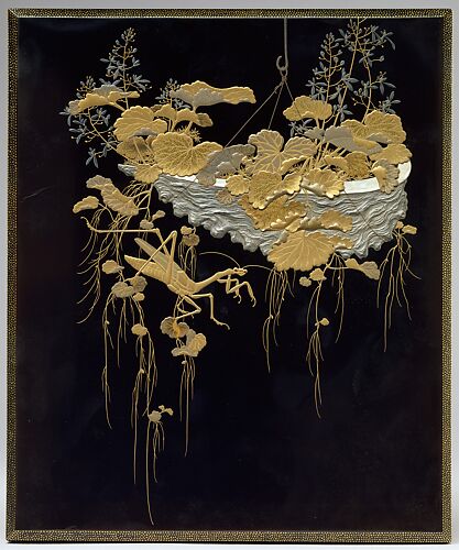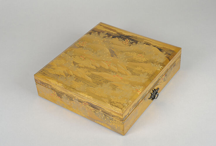 - Medium: Lacquered wood with gold and silver takamaki-e, hiramaki-e, and togidashimaki-e, cutout gold- and silver-foil application, and red and green lacquer