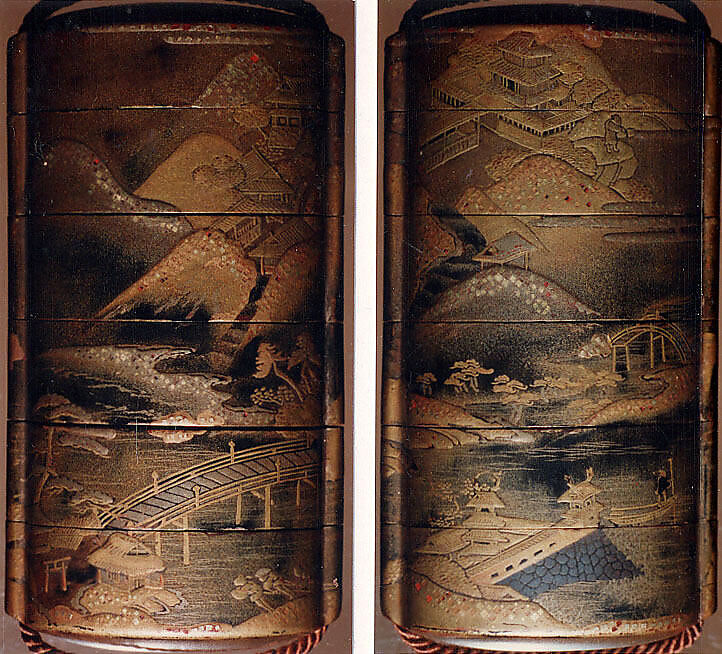 - Medium: Lacquer, fundame, gold, silver and black hiramakie, nashiji, togidashi and kirigane; Interior: nashiji and fundame