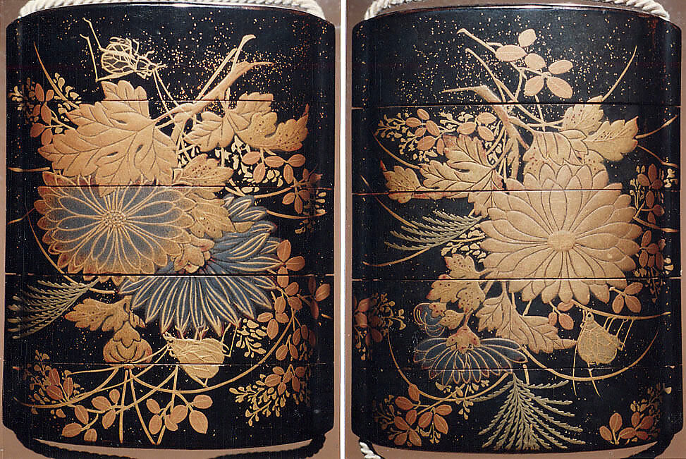 - Medium: Lacquer, roiro, gold and silver hiramakie, nashiji; Interior: nashiji and fundame