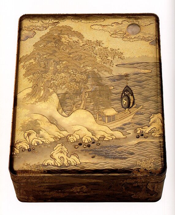 - Medium: Lacquered wood with gold and silver takamaki-e, hiramaki-e, togidashimaki-e, cut-out gold foil on nashiji and gold ground