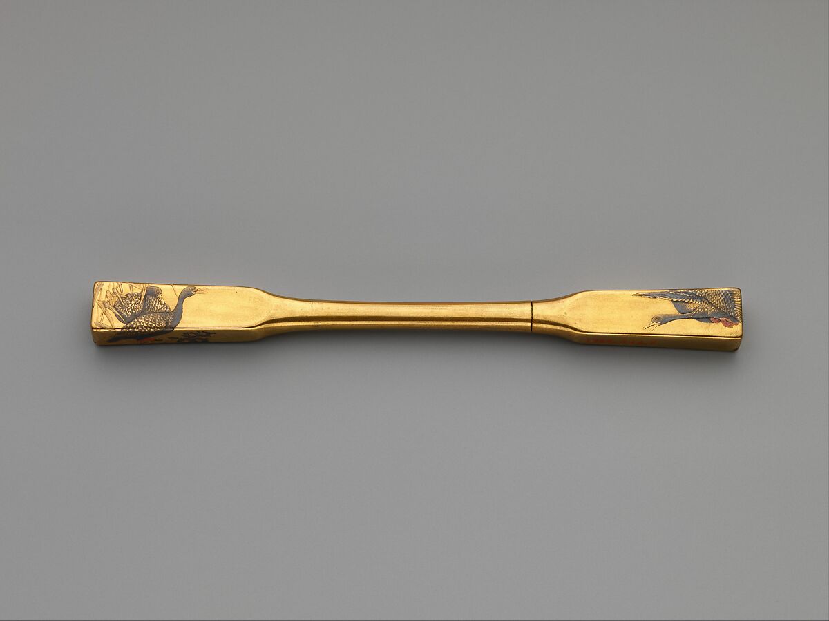 - Medium:Lacquered wood with gold, silver hiramaki-e on gold ground