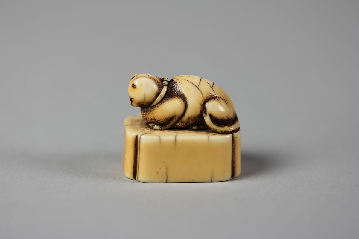 - Title: Netsuke of Cat on a Seal-Shaped Base