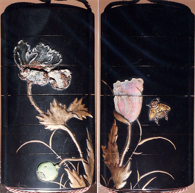 - Title: Case (Inrō) with Design of Bee Flying beside Flowering Poppies