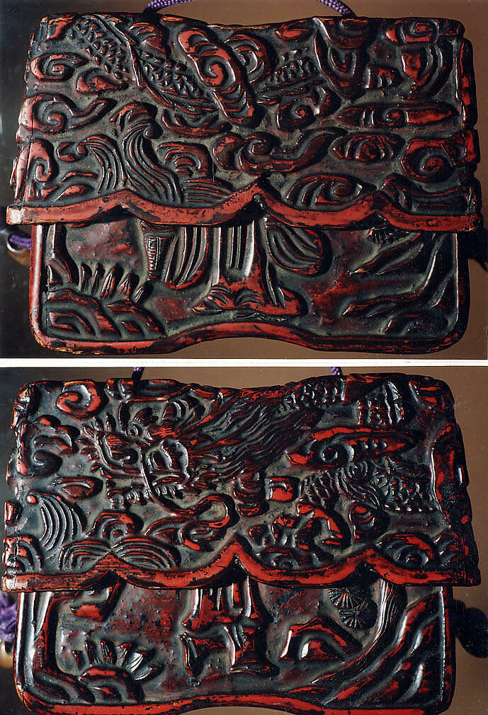 - Medium: Lacquer, kamakura-bori, carved wood, red and black lacquer; Interior: roiro