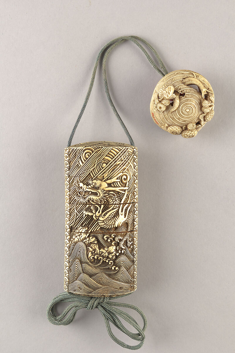 - Title:Case (Inrō) with Design of Three-Clawed Dragon in Rain and Swirling Clouds