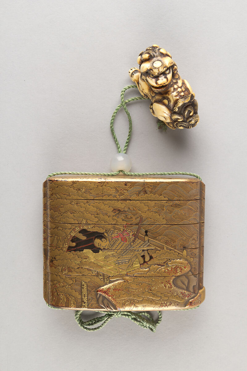 - Title: Case (Inrō) with Design of Samurai Kneeling on Bridge among Pines and Waves