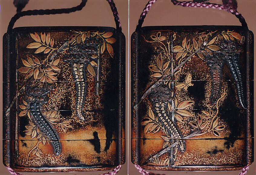 - Title:Case (Inrō) with Design of Flowering Wisteria on a Trellis