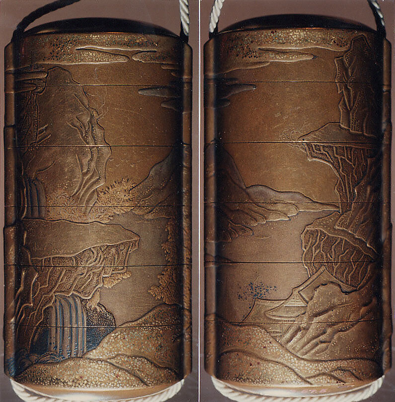 - Title: Case (Inrō) with Design of Chinese-Style Landscape with a Building (obverse); Waterfall with Cloud Bands (reverse)