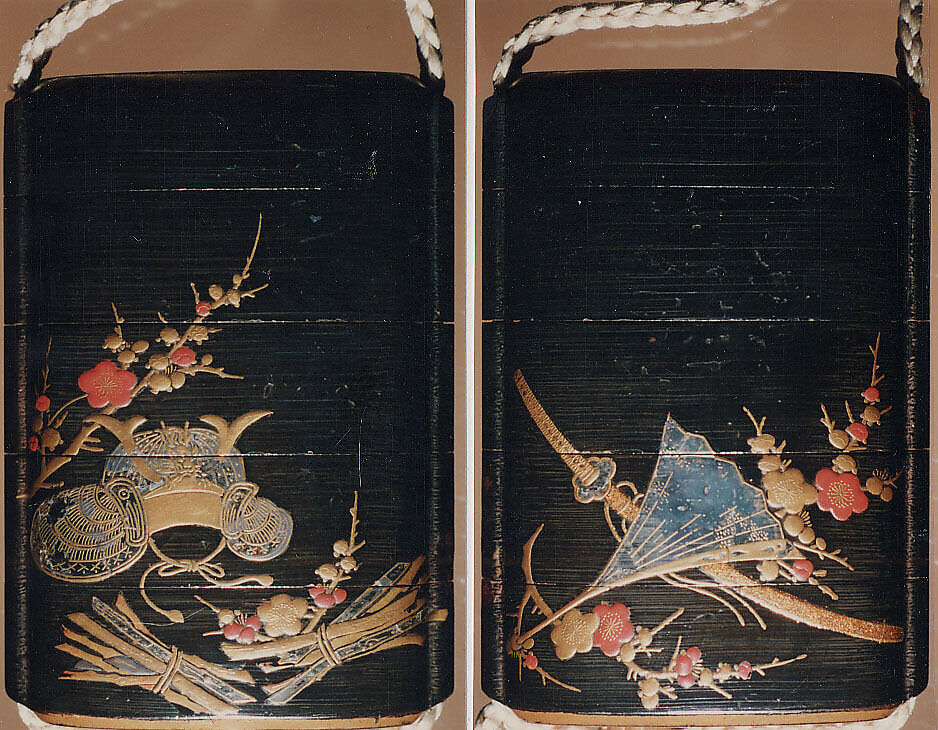 - Medium: Gold lacquer inlaid with mother-of-pearl on a black lacquer ground