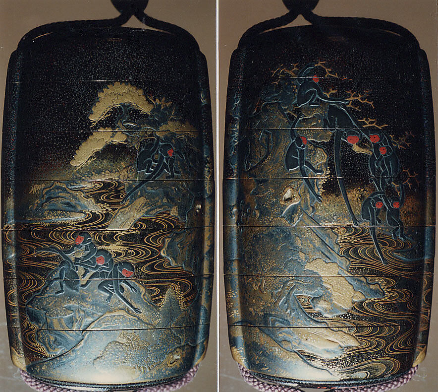 - Title: Case (Inrō) with Design of Monkeys Hanging from Trees Above Waves (obverse); Monkeys Seated on Rocks (reverse)
