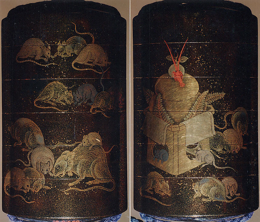 - Title: Case (Inrō) with Design of Rats Eating Rice beside New Year Arrangement with Mochi and Crayfish
